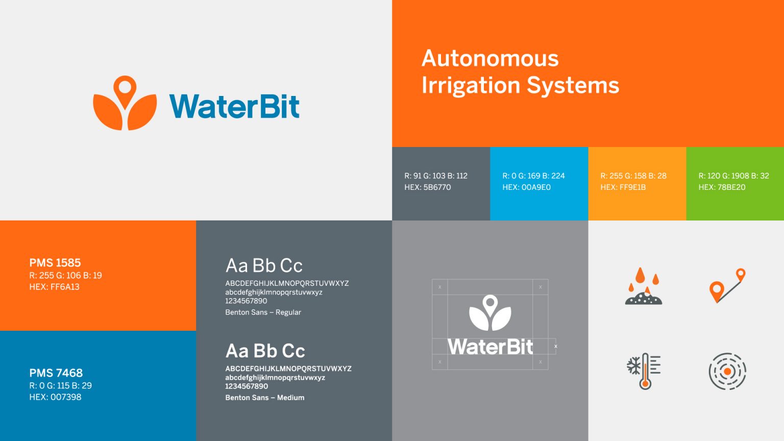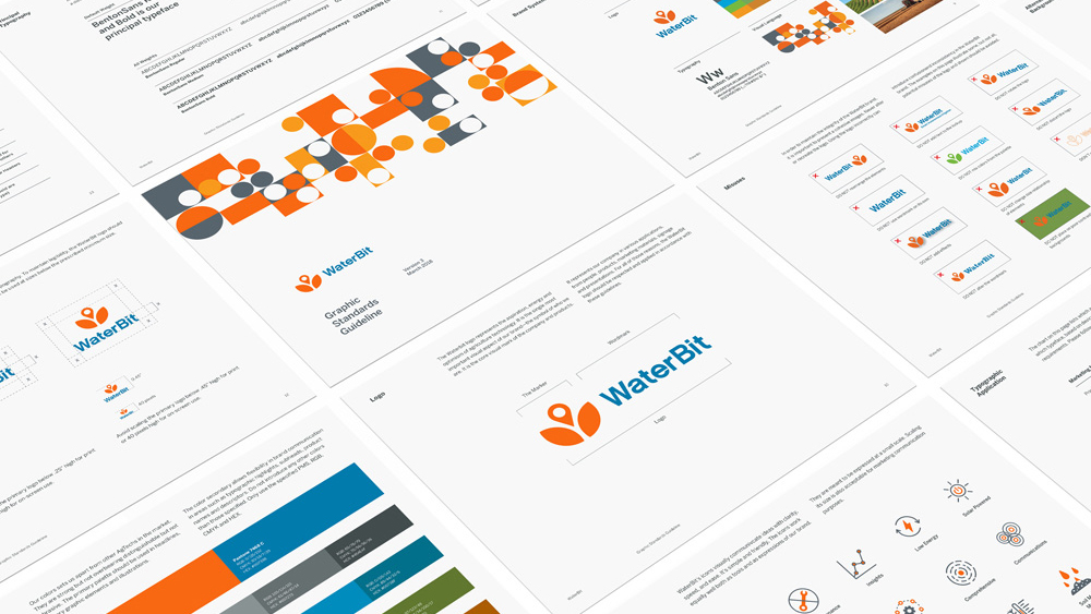 After developing WaterBit’s corporate brand identity, Mighty Studios created the design language for their product suite. For direct feedback from users, Mighty staff showed device prototypes to farmers and growers. The result was a line of durable, recognizable, purpose-built devices that were easy to deploy and service. In conjunction with the industrial design team, Mighty Studios worked with WaterBit to develop its brand identity. This project included crafting their logo, visual language, marketing icons, and an identity system. We also supported their website, marketing collateral, pitch decks, and trade show banners. Elements of the system were inspired by row and pivot crops as seen from an aerial perspective. The palette was inspired by nature, such as water and the colors of harvest.